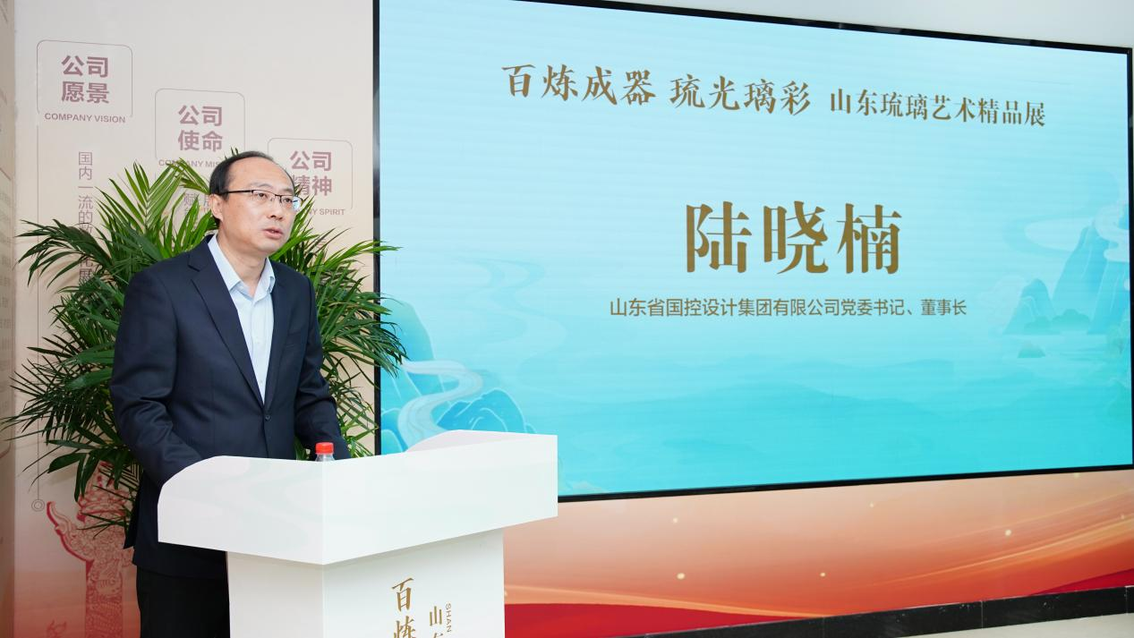 山东省国控设计集团有限公司党委书记、董事长陆晓楠在讲话中表示,山东琉璃是传承着中华文明基因的文化载体。山东省国控设计集团有限公司作为省属综合性设计平台将充分发挥自身优势,为全省文化创意产业转型升级和高质量发展提供坚实的战略支撑。