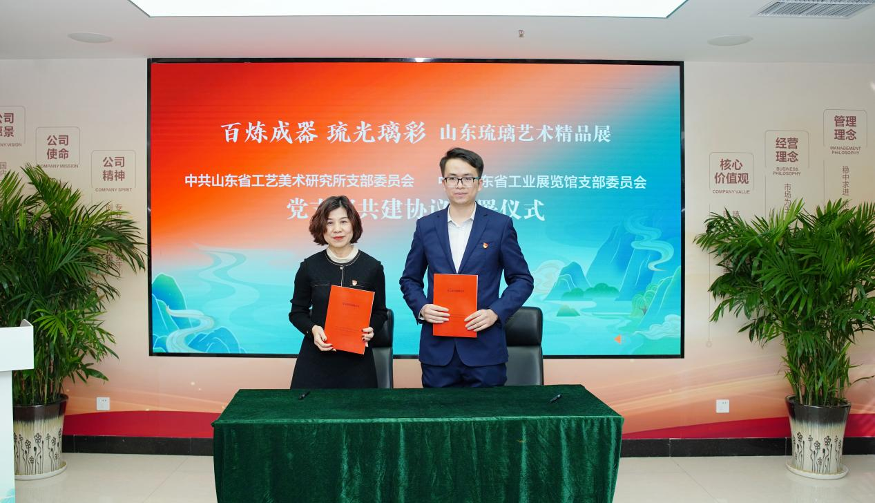 中共山东省工艺美术研究所党支部与中共山东省工业展览馆党支部在开幕式上签署了党支部共建协议,共同为山东工艺美术事业繁荣发展注入新动能。