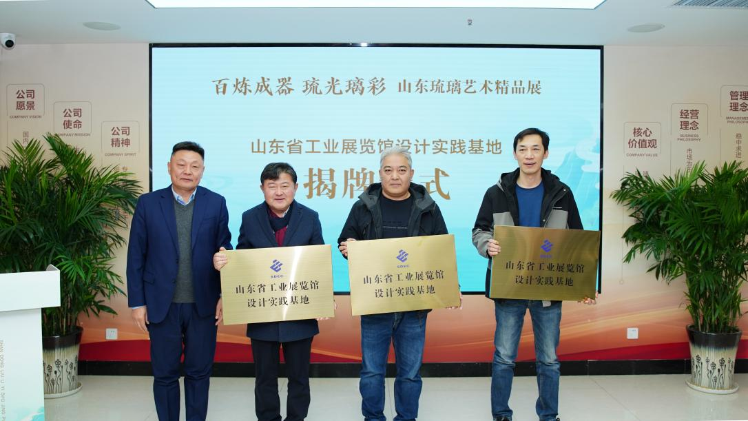 随后山东省工业展览馆馆长王风光为淄博康乾琉璃艺术馆、淄博爱美琉璃制造有限公司、葡萄孙琉璃工作室三家单位“山东省工业展览馆设计实践基地”牌匾揭牌,标志着山东琉璃产业的产、学、研、展协同发展生态链进一步完善。