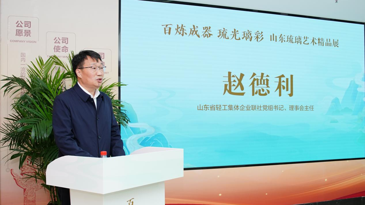 山东省轻工集体企业联社党组书记、理事会主任赵德利在讲话中指出,琉璃作为山东工艺美术的重要组成部分,承载着深厚的文化底蕴与匠心精神。要以此次展览为契机,持续推动产业规模扩大、技艺有序传承与创新能力提升,为山东琉璃永续发展提供坚实保障。