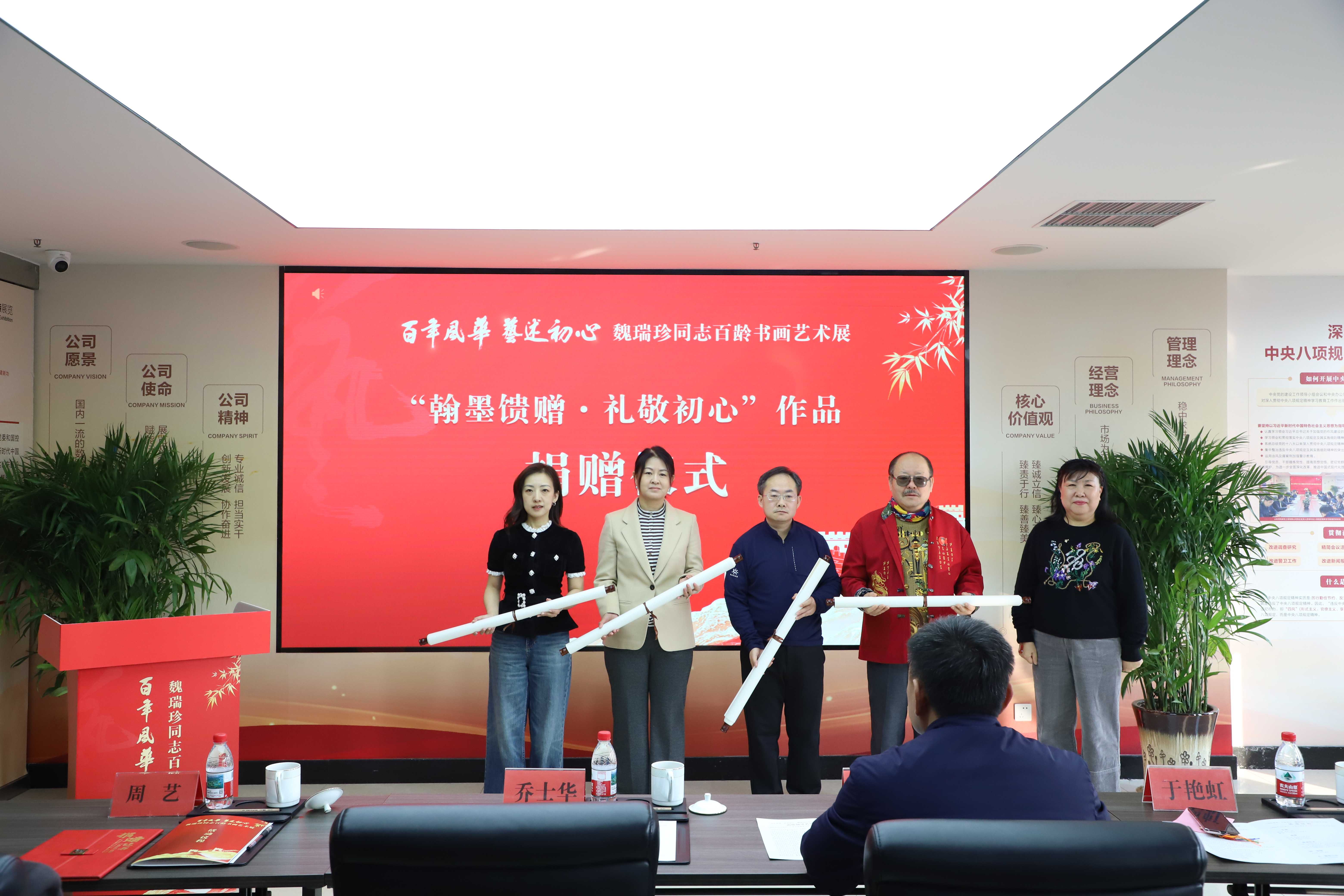 “翰墨馈赠·礼敬初心”作品捐赠仪式:魏瑞珍同志将多幅精心创作的作品无偿捐赠,以百年笔墨礼敬初心,传递家国情怀,彰显文化薪火相传的使命担当。